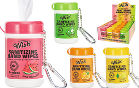 Scented sanitizing hand wipes wipes with carabiner clip
